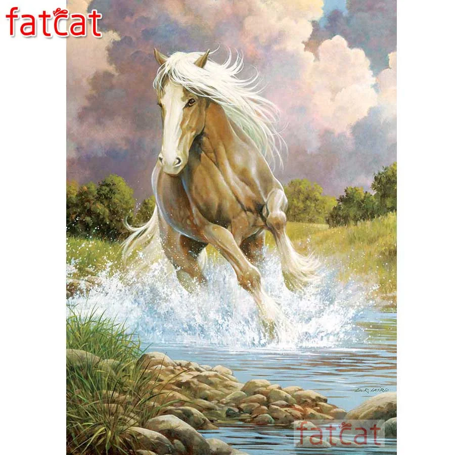 FATCAT 5D DIY Diamond Painting River Horse Full Square Round Drill Mosaic Diamond Embroidery Sale Animals Home Decor AE2026