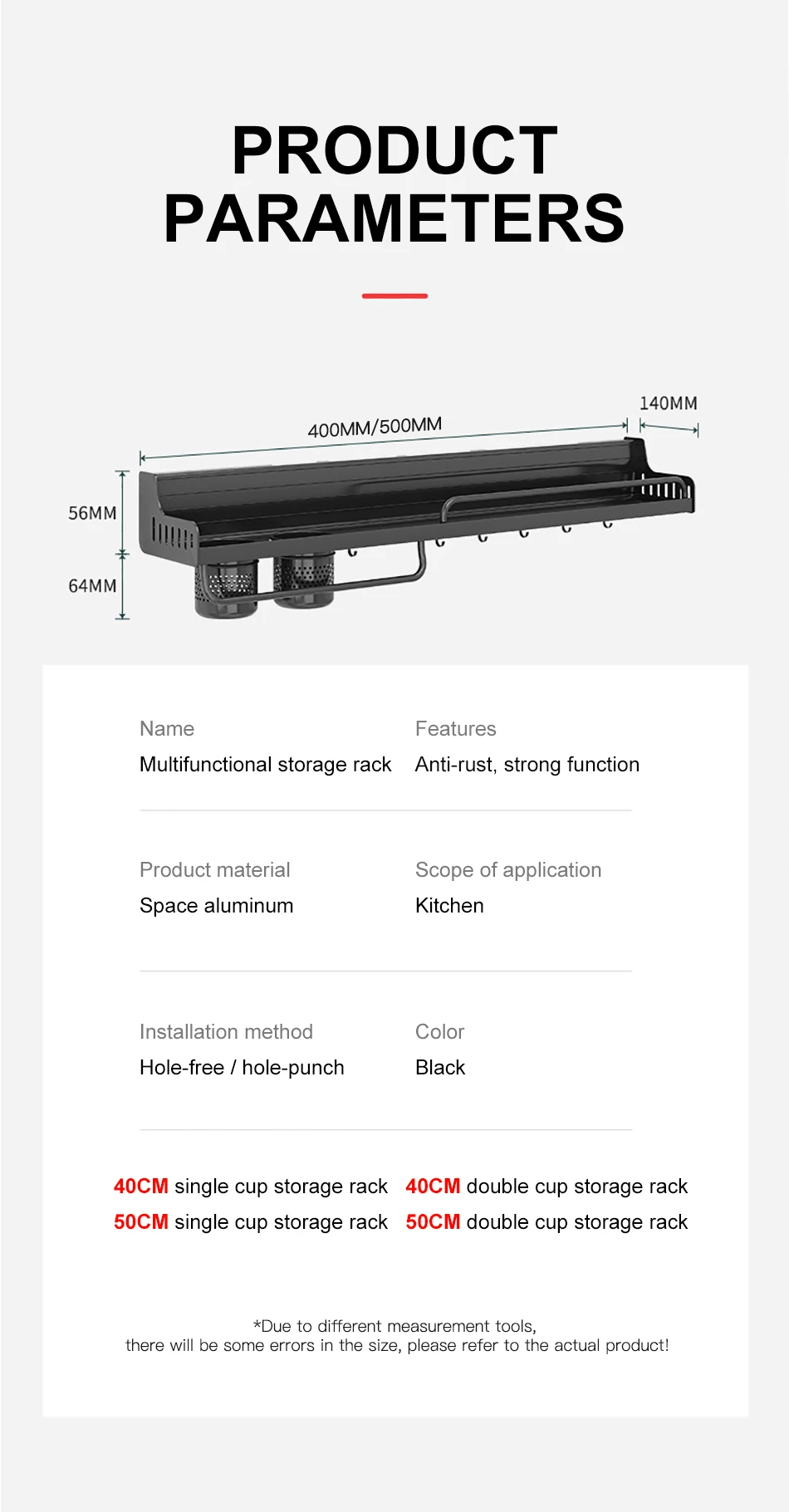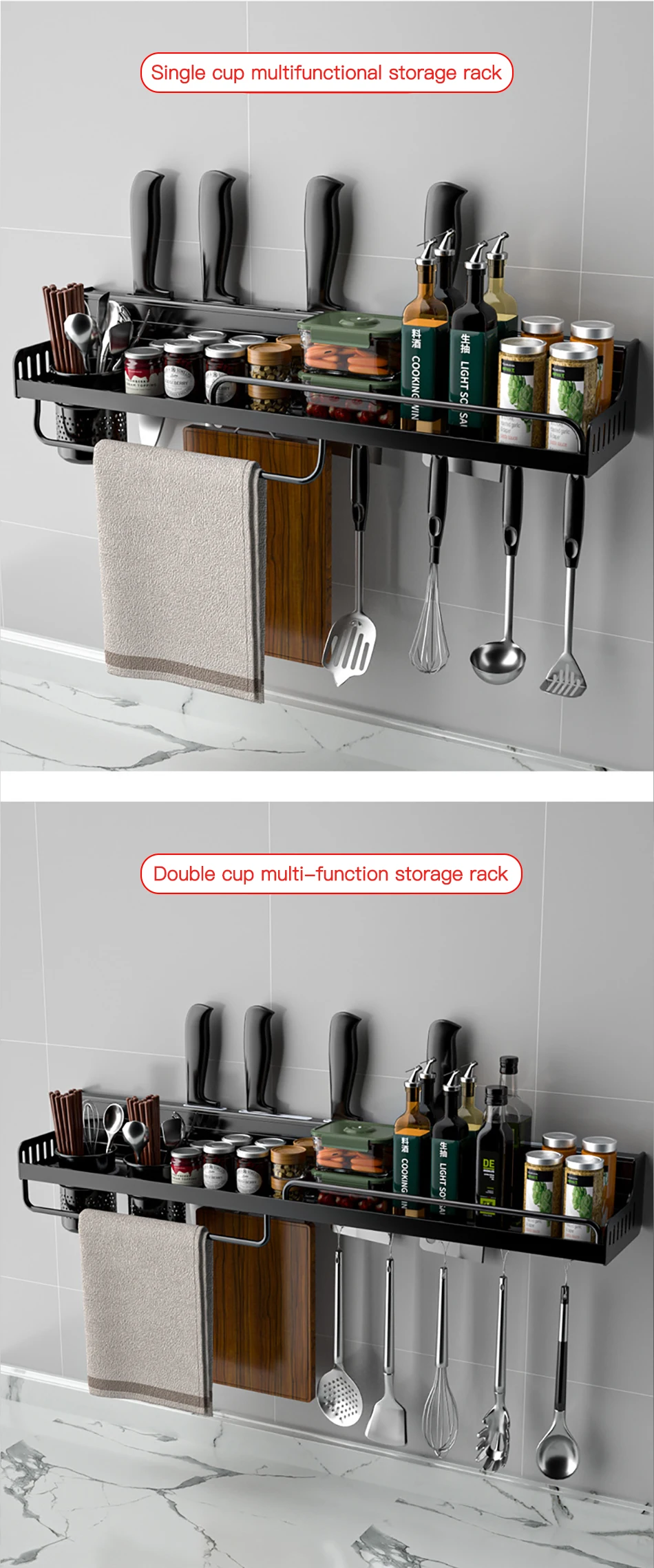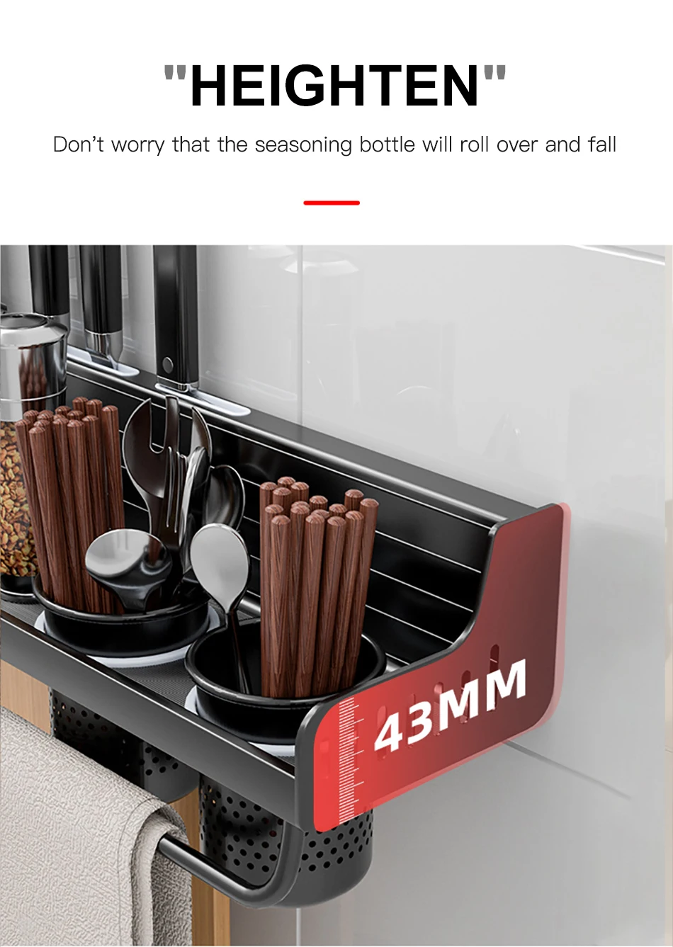 Multifunctional Kitchen Rack 40/50Cm Shelf Chopsticks Tube with Hook Kitchen Organizer Home Accessories Wall-Mounted Punch-Free