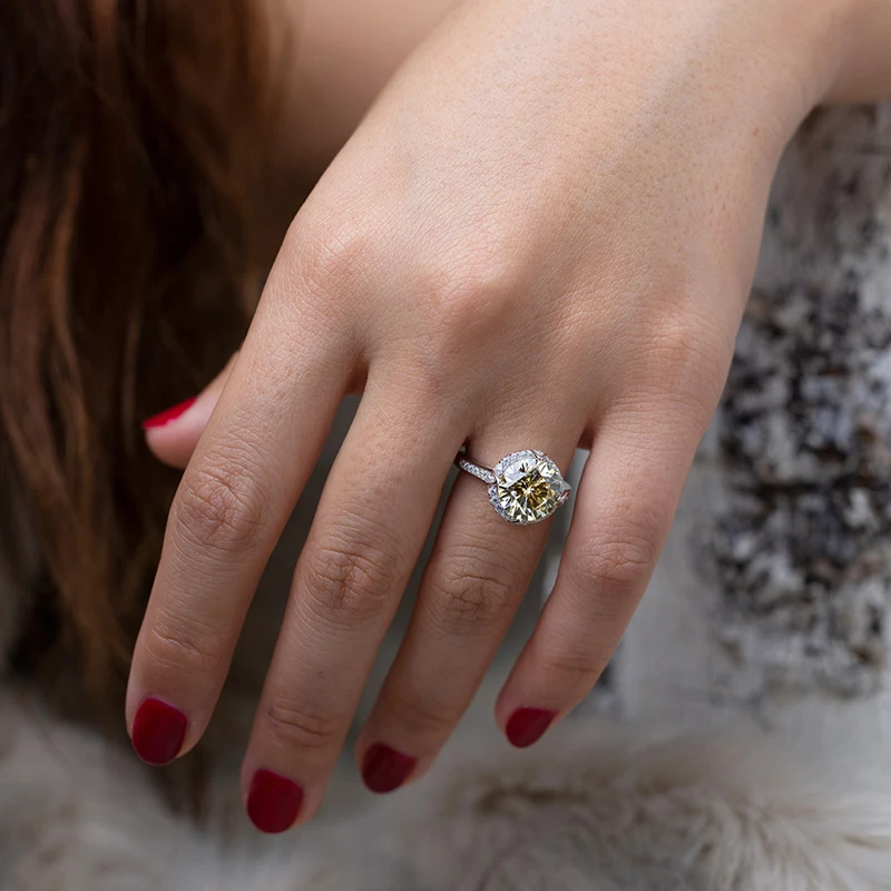 Name:OEVAS Solid 925 Sterling Silver Sparkling 10*10mm High Carbon Diamond Colorful Zircon Wedding Engagement Fine Jewelry Wholesale